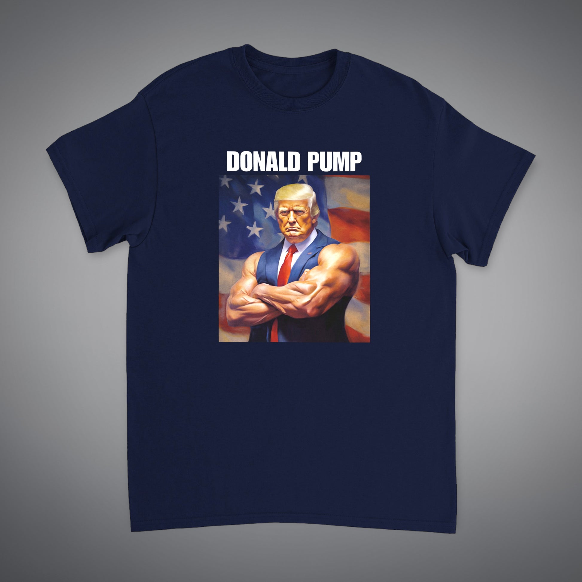 Ladies and gentlemen, brace yourselves for the most tremendous, the most incredible t-shirt you will ever have the privilege to wear – the Donald Pump Tee. It's not just great; it's Donald Trump great, which means it's the best, believe me. This shirt is a winner, and I know winners. I've been winning all my life, and so have my shirts. It's a declaration of swole-itical power, a shirt that screams MAGA - Make America Gain Again. Get ready to flex your patriotism just as hard as your biceps because this shirt is huge, folks, just like the gains you'll be making while wearing it. Let's make America jacked again!