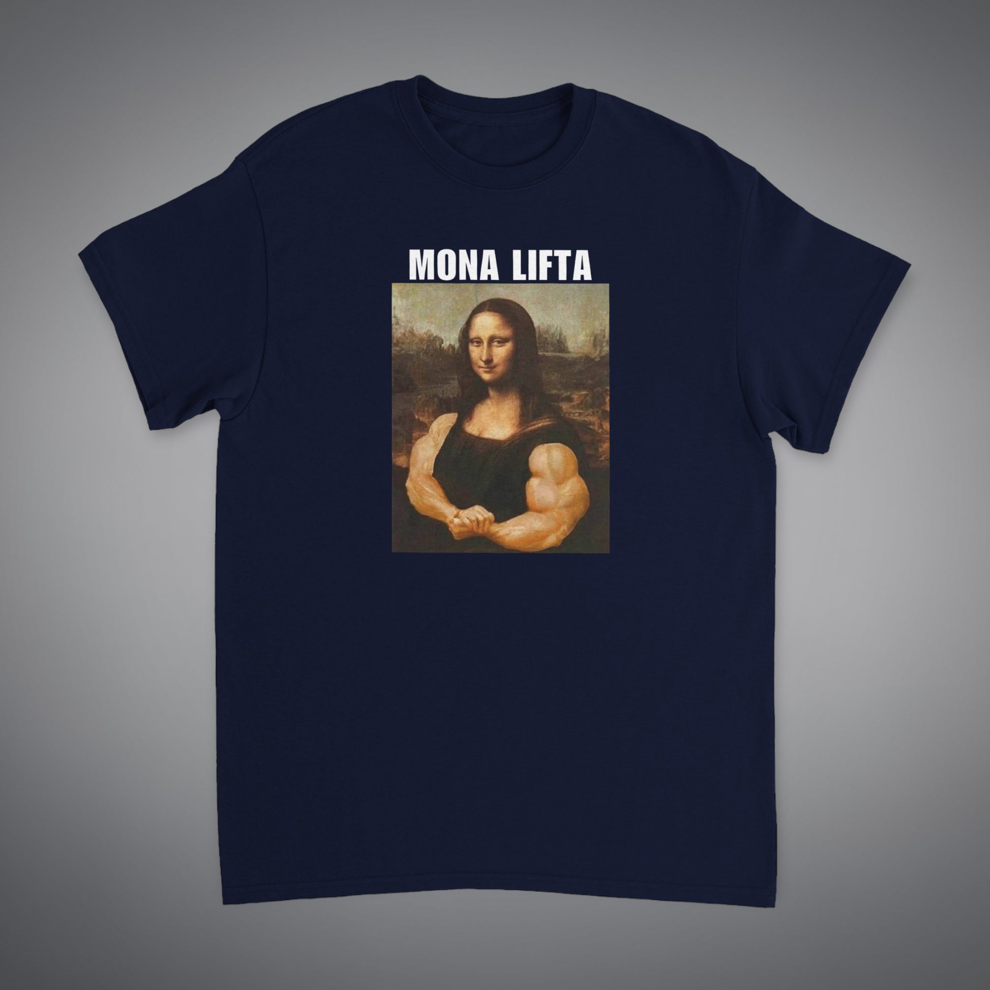 Behold the masterpiece of muscle, the 'MONA LIFTA' tee! This ain't your average museum piece, it's a renaissance of reps, a baroque of biceps, and a downright classic in the cathedral of gains. This tee's for those who know that art isn't just about staring at pretty pictures; it's about creating a sculpted physique that would make Michelangelo drop his chisel and join a gym.