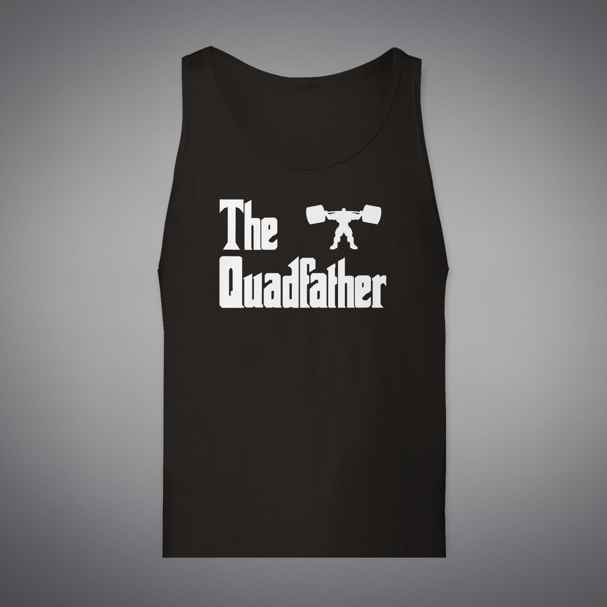 Welcome to the family with 'The Quadfather' tank, where every day is leg day and respect is paid in reps. This ain't just a tank; it's a pledge of allegiance to the family of iron, a symbol that you’re part of the most powerful crew in the gym, the one that pulls the heaviest, squats the deepest, and never betrays leg day.